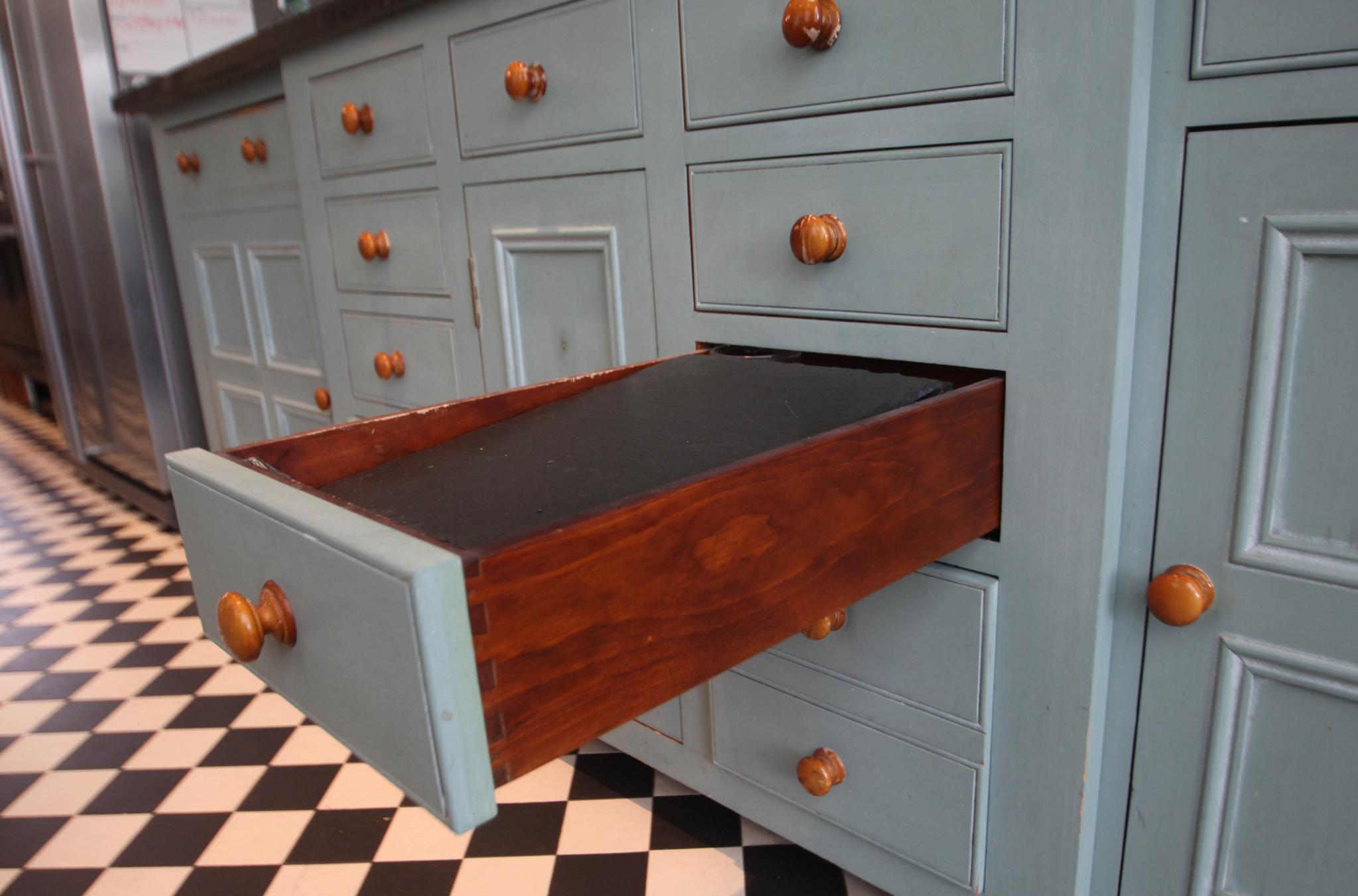 Occasionally a kitchen may have a chimney breast and mantle. In most cases this is ‘faux’ and the mantle will sit on top of a solid piece of work-surface. However, sometimes the work-surface may be cut around the chimney breast, leaving a cut out on removal. It is normally possible for us to identify if this will be the case, however not in every case. Buyers must be aware of this and plan for this to avoid disappointment.